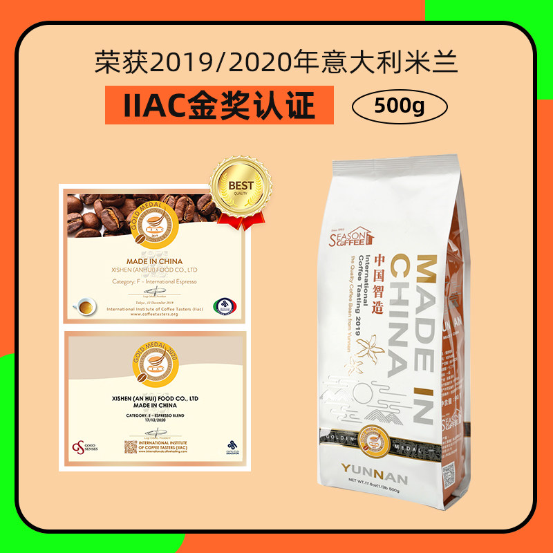 Focus on 30 years of tasting ingenuity Good coffee support Yunnan coffee farmers (gold hanging ear coffee) 10 packs support Yunnan Coffee farmers (gold coffee beans) 500g Gold coffee refers to the international IIAC coffee,It's mellow