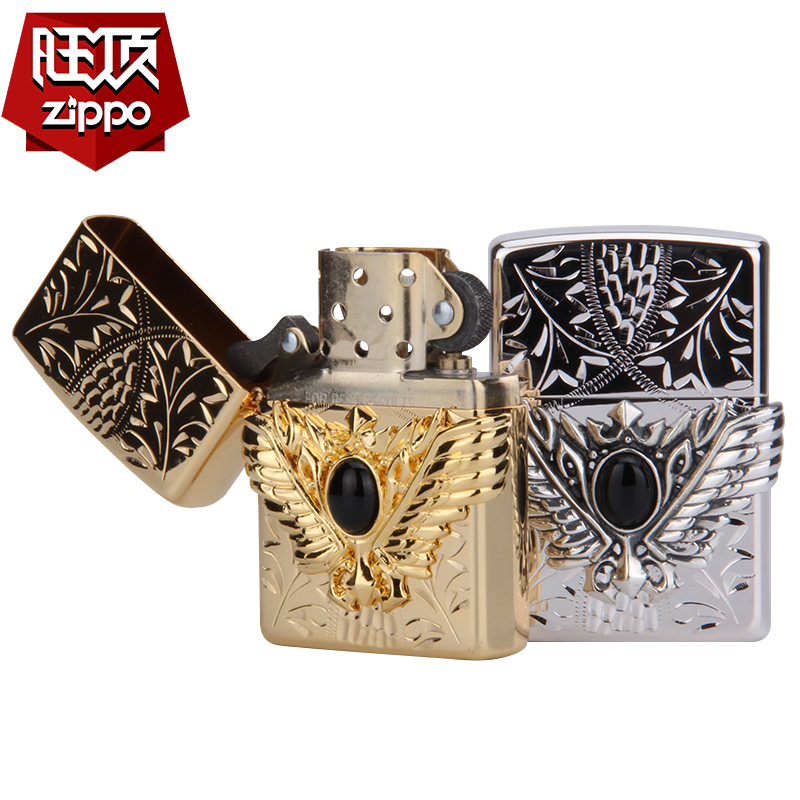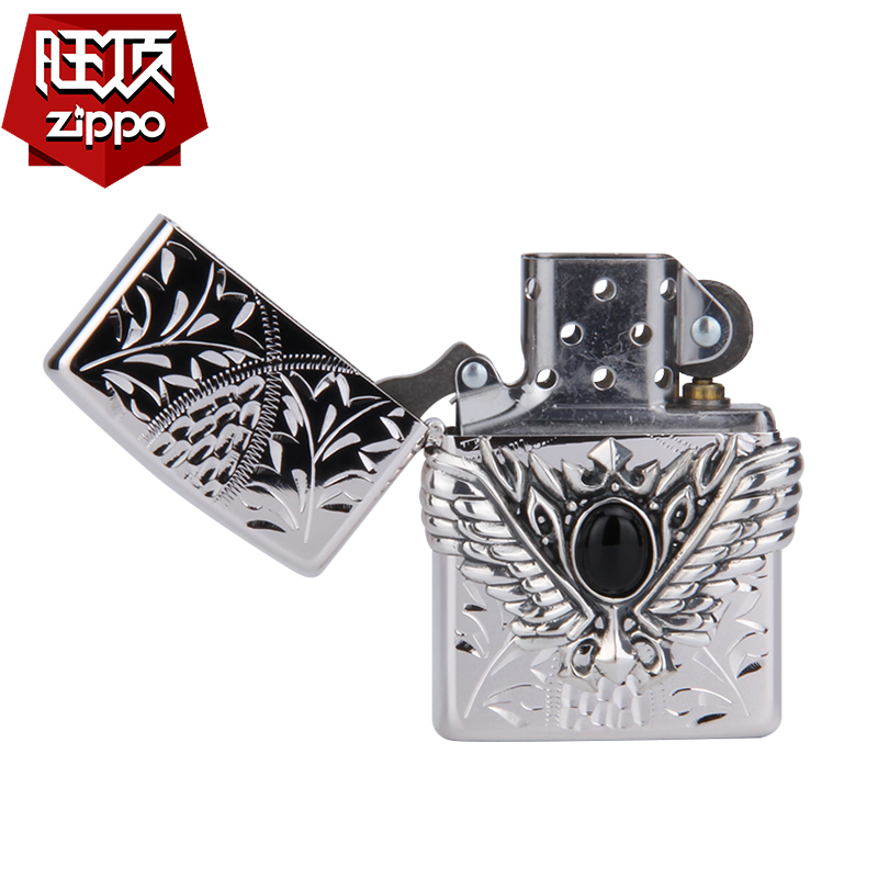 ZIPPO lighter hand engraving wings silver-coated black pine stone day version Guardians lucky wings zbt-5-7