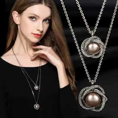 Creative new product Sweet twin rose fashion necklace Long version diamond sweater chain Multi-layer accessories pendant