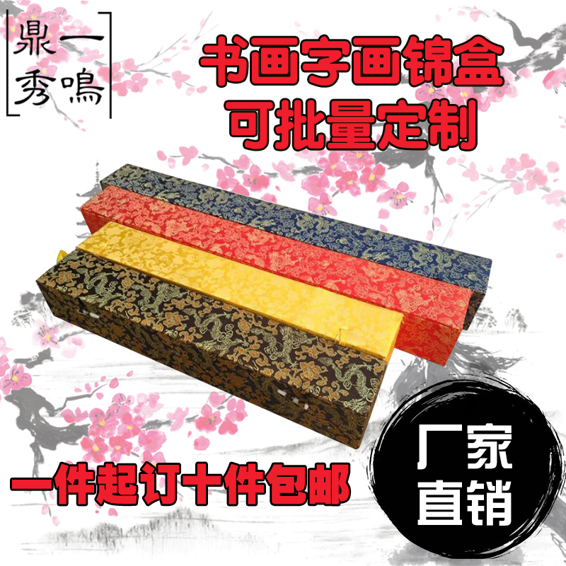 Wholesale traditional calligraphy and painting brocade box custom calligraphy and painting ceramics collection linen scroll hand roll gift box full