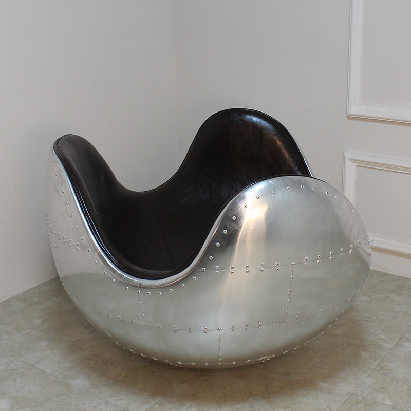 Net red No tumbler Chair Casual Loungchair Retro Aluminum Leather Chair Fiberglass Single Sofa Chair Pure Handmade Lounge Chair