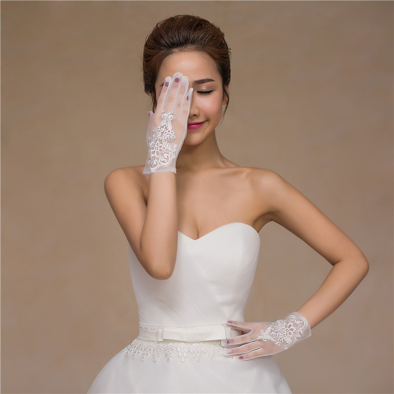 2017 bridal wedding gloves short Korean five finger lace white wedding dress lace accessories S