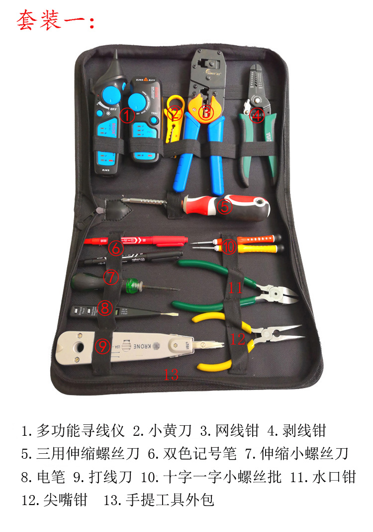 Wire-seeking gauge wire measuring instrument combination suit Internet tool suit network management weak electric construction kit network route crimper