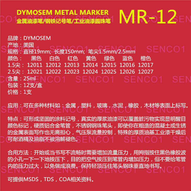 U.S. Imports DYMOSEM Metal Paint Marker Pen Iron and Steel Industry Marking Alcohol Resistant
