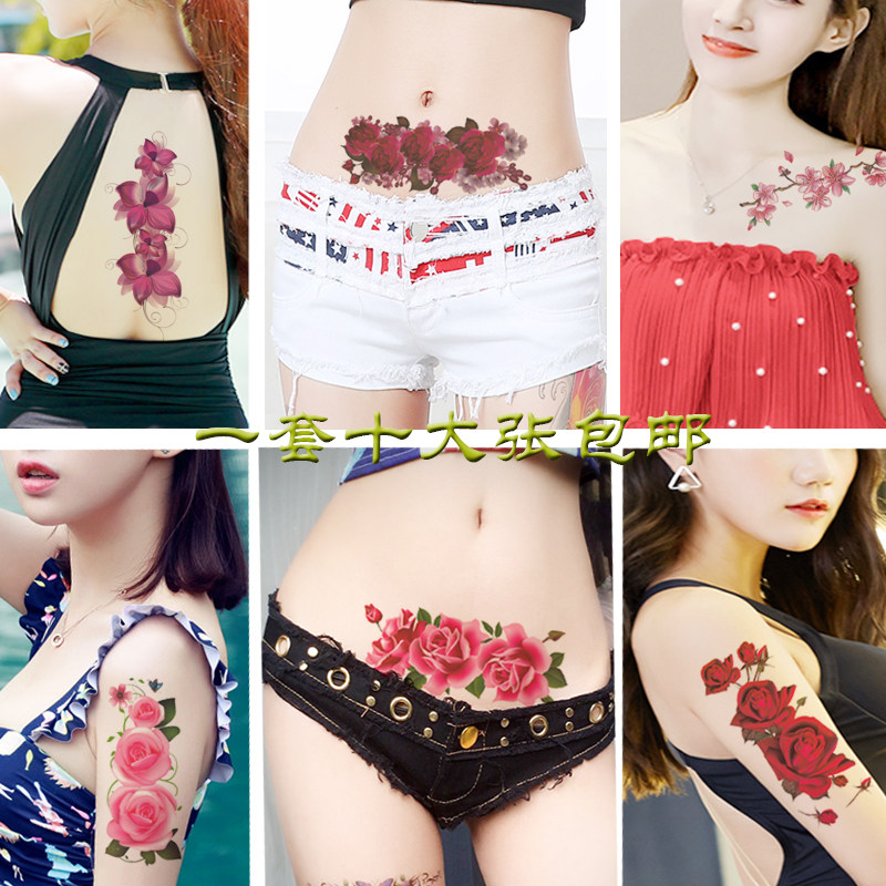Ancient wind sexy rose tattoo with belly scar caesarean section big picture peony waterproof female durable net red