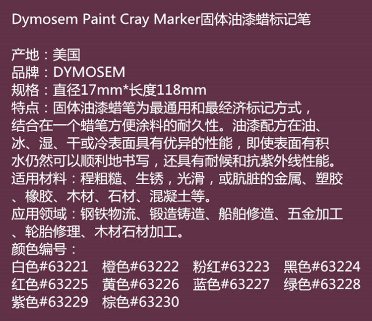 Wholesale USA DYMOSEMl Solid paint pen Oil crayon PC-63 Solid paint pen waterproof