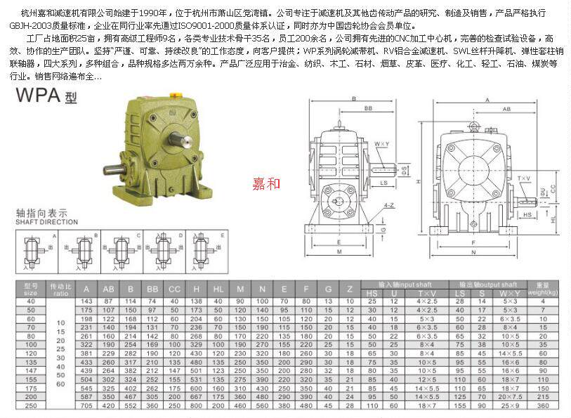 Zhejiang Hangzhou Jiahe WPA100 worm gear reducer 1:10 to 60 speed ratio, Hongjie