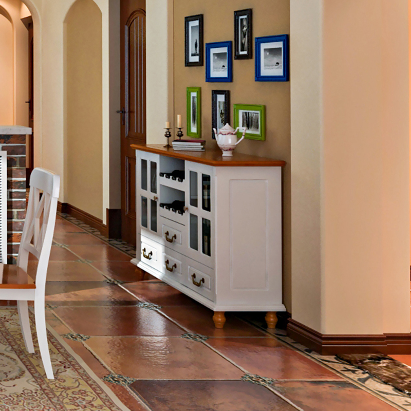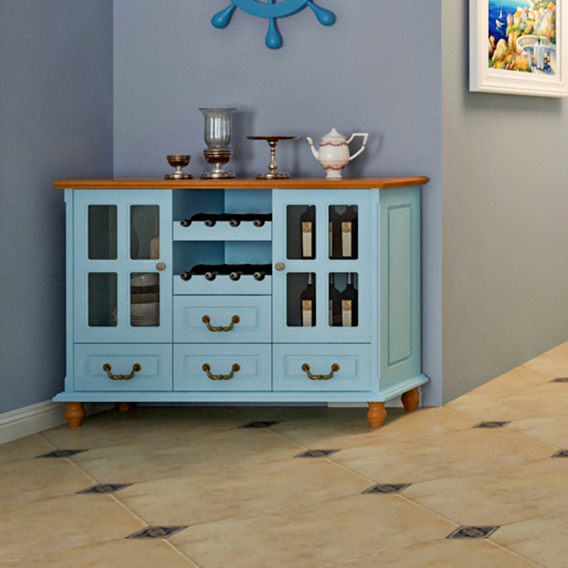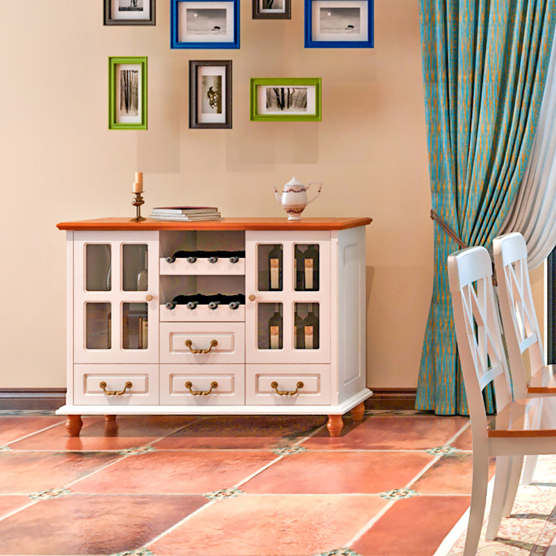 Mediterranean dining cabinet Kitchen tea cabinet Dining cabinet Piano paint Solid wood storage cabinet Simple pastoral wine cabinet