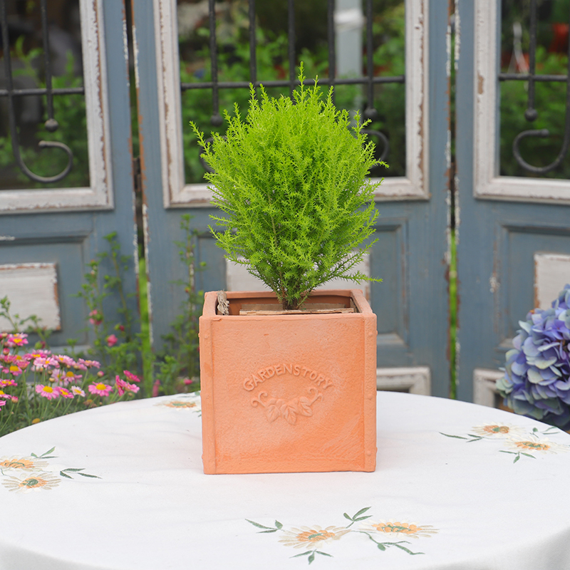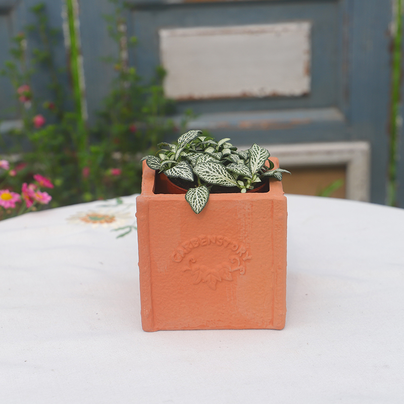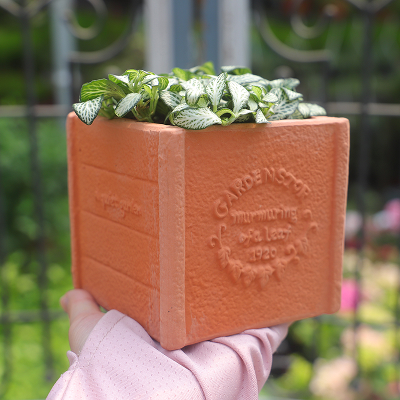 Red pottery wreath square set two pots flower vine lace succulent pot red pottery white caliber 18CM 13CM