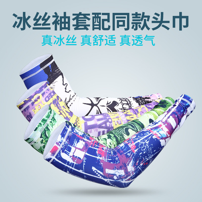 Sunscreen sleeve cover Men's arm cover Tattoo flower arm cover Sleeve arm seamless outdoor cycling driving ice silk ice sleeve men