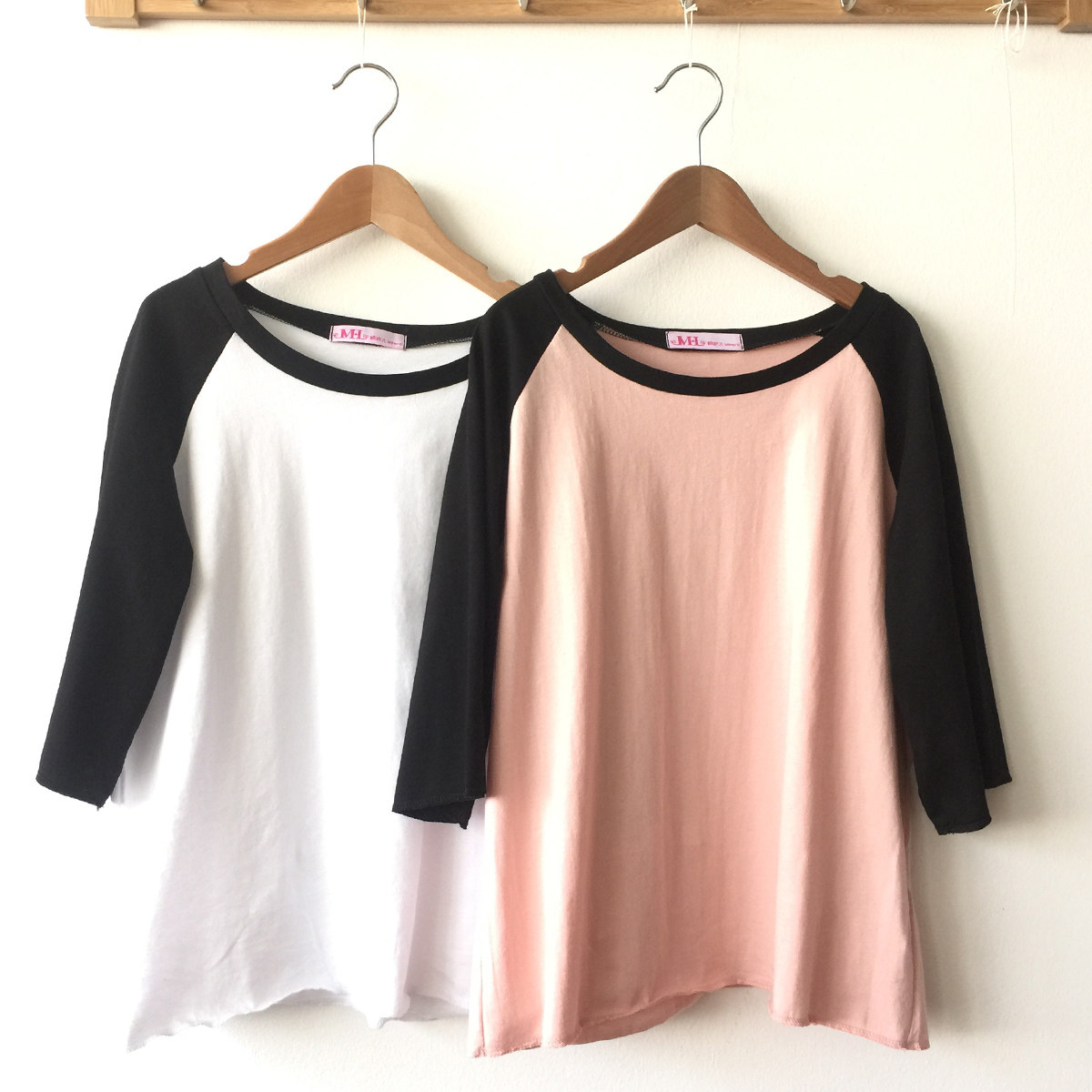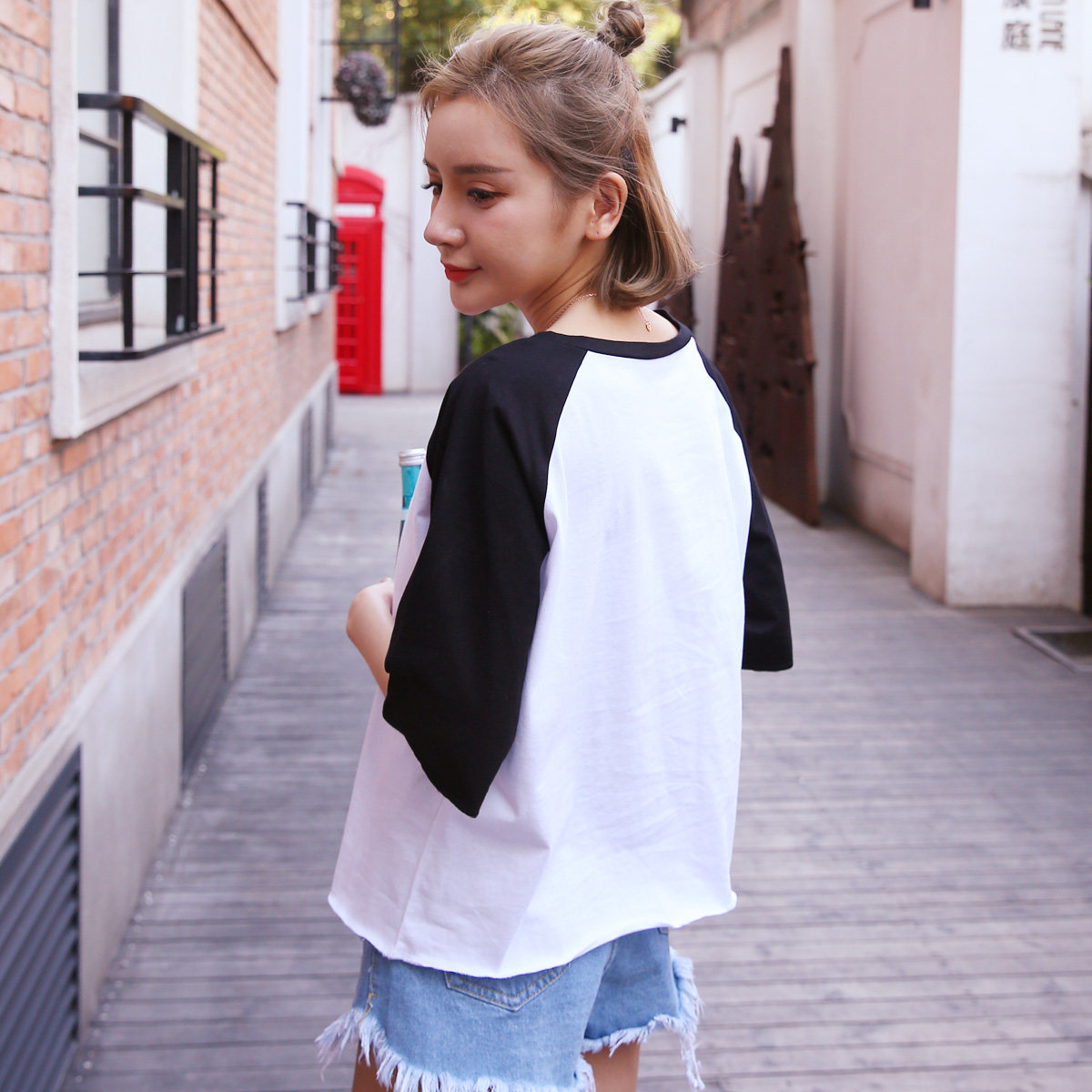 (Clearance Special) Original Cotton Raglan Sleeve Short Sleeve T-Shirt Loose Version Contrast Color College Style Ladies Round Neck