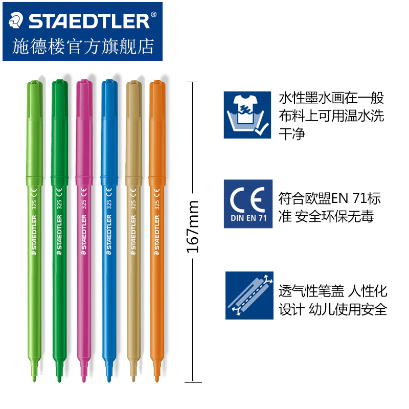 STAEDTLER STAEDTLER watercolor pen 325 WP12) 24 Watercolor pen wash children's painting watercolor pen Kindergarten color pen art 24 Watercolor pen painting set painting brush