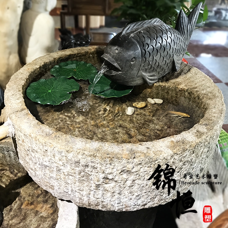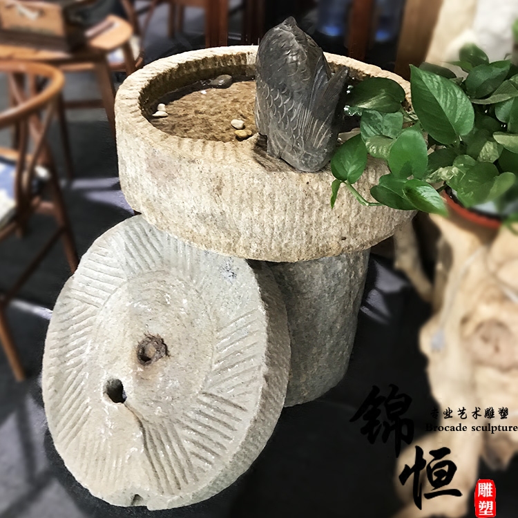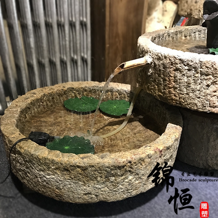 Old Stone Trough Flowing Water Swing Pieces Old Stone Millstones Folk Old Instrumental Balcony Living Room Office Raising Fish Pond Waterscape Stone Tank Fish Tank