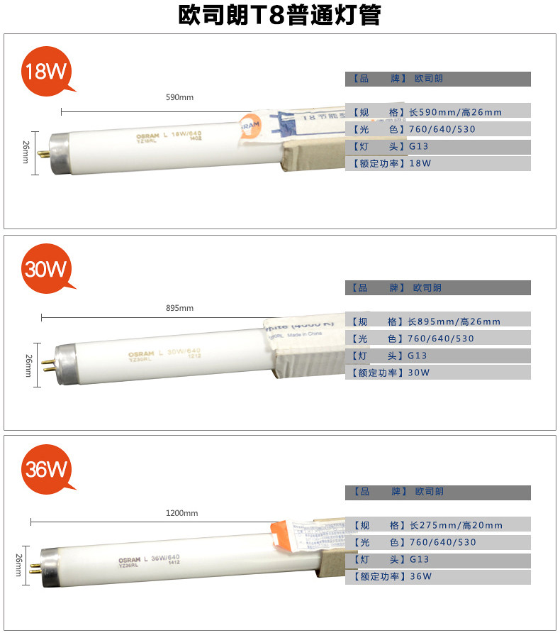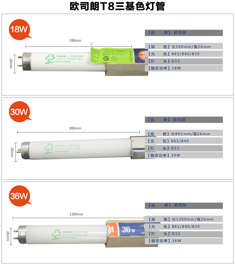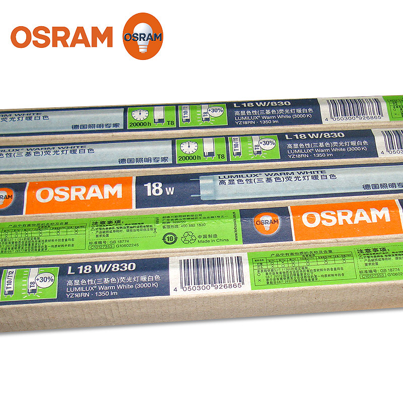 OSRAM T8 tube tri-color fluorescent lamp 18w30w36w household long energy-saving fluorescent tube
