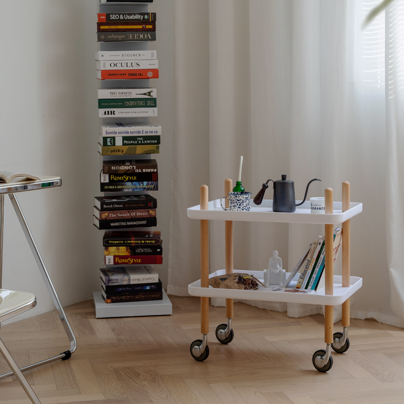 Nordic Danish sofa side cabinet small apartment simple bedside table solid wood cart mini mobile coffee table side corners