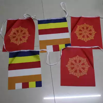 20*25 Buddha flag Falun flag Temple French wheel string flag Buddhist five-color flag Buddhism flag Buddha with colorful flag trumpet small stripe flag