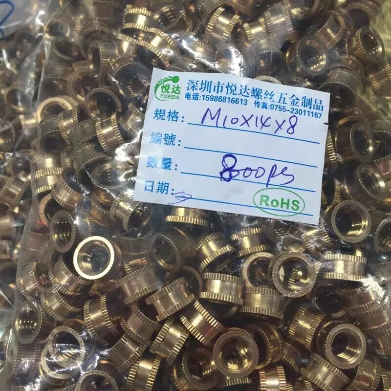 Environmental precision M10*1 0*8*14 Injection embedded knurled RoHS fine tooth copper nut Copper inlaid nut