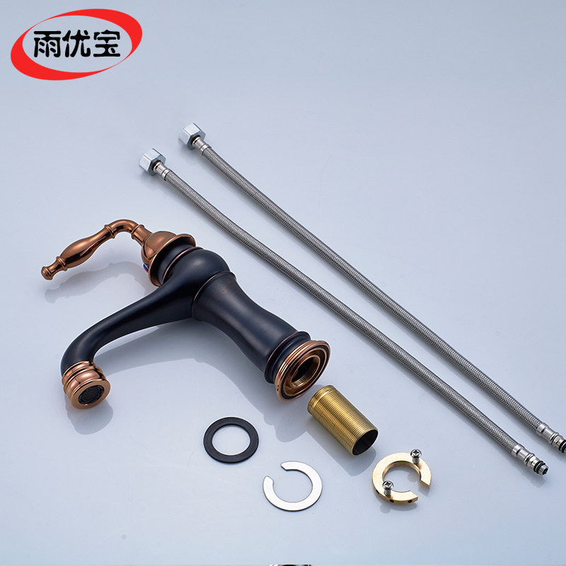Eurostyle black tap cold and hot water fit golden table basin make-up room washbasin ceramic basin glass basin single hole