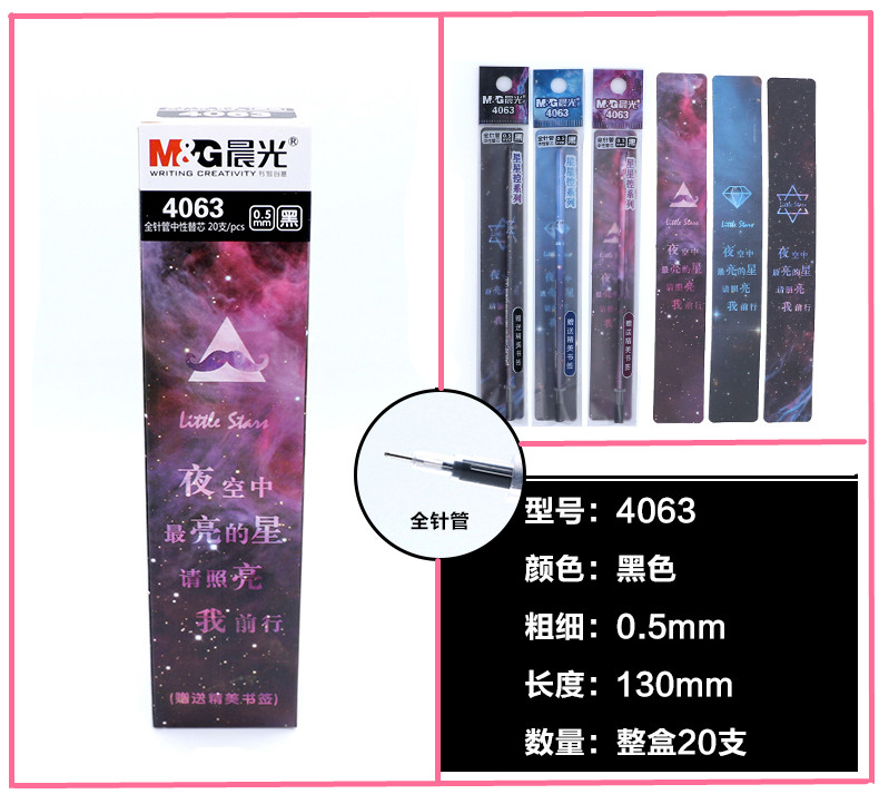 Morning light 4063 star control 0 5mm signature pen core Water-based pen refill for the core black 20-piece box full needle tube universal refill cute super cute refill for the core exam refill send bookmark