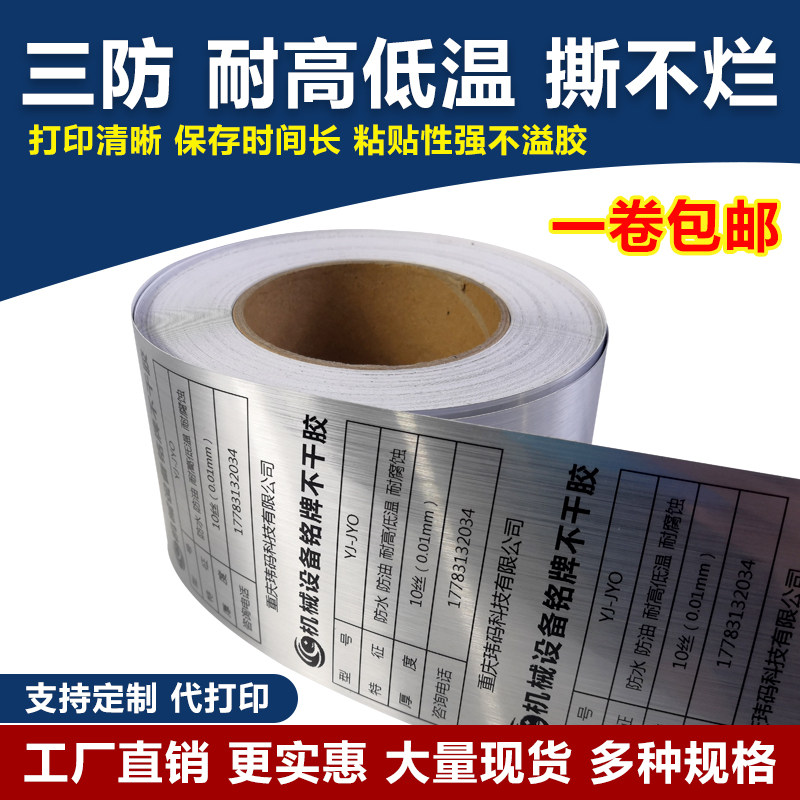 Special price equipment nameplate thick bottom sticker 110mm * 50m light silver wire drawing label printing machine adhesive signage
