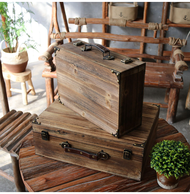Tanyuan to make old retro suitcases Wooden Suitcases Folk Hangover Windows Decoration Swing Accessories Shooting Props.