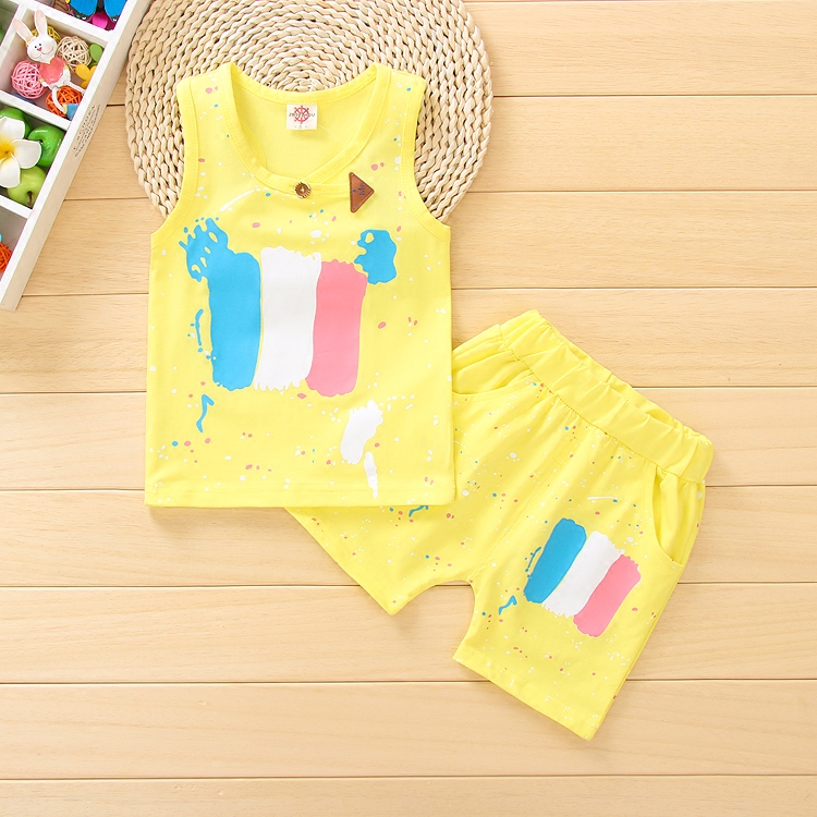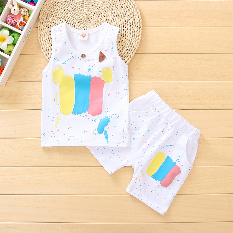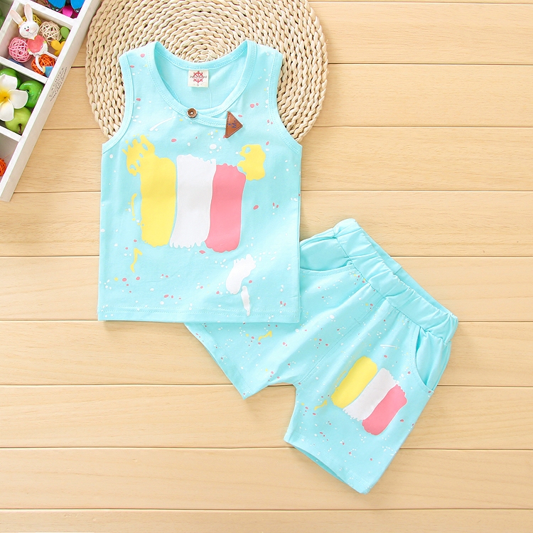 Summer new children's vest suit knitted cotton boy's suit child clothes girl baby 1-4 years old