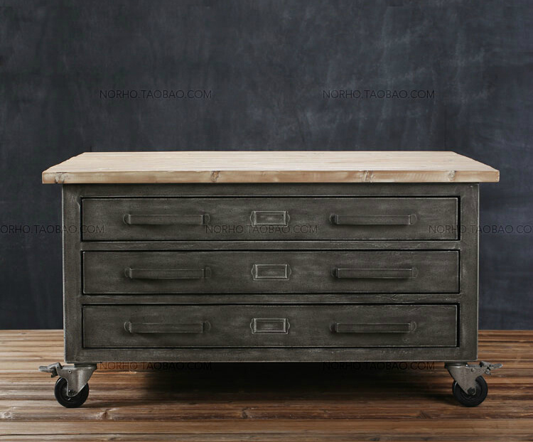 French American country solid wood retro wrought iron to do old loft TV cabinet locker storage cabinet porch table