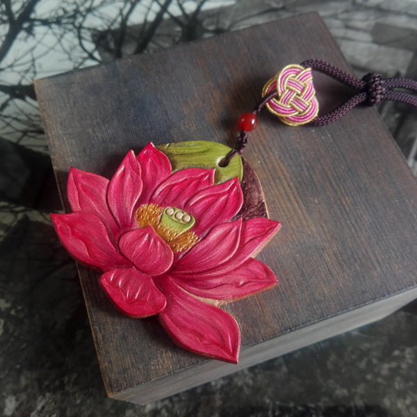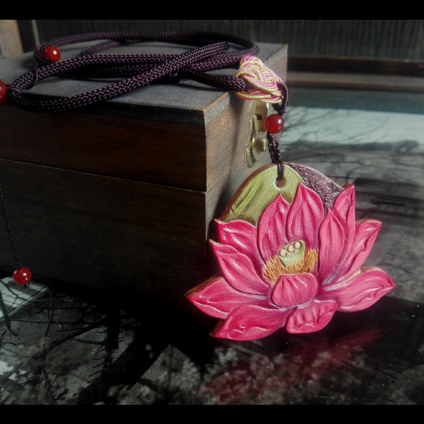 Handmade Men's Bags Women's Bag Accessories Ordering Cow Leather Carvings Flowers Painted Purple Lotus Woman Money Chain Hanging Accessories