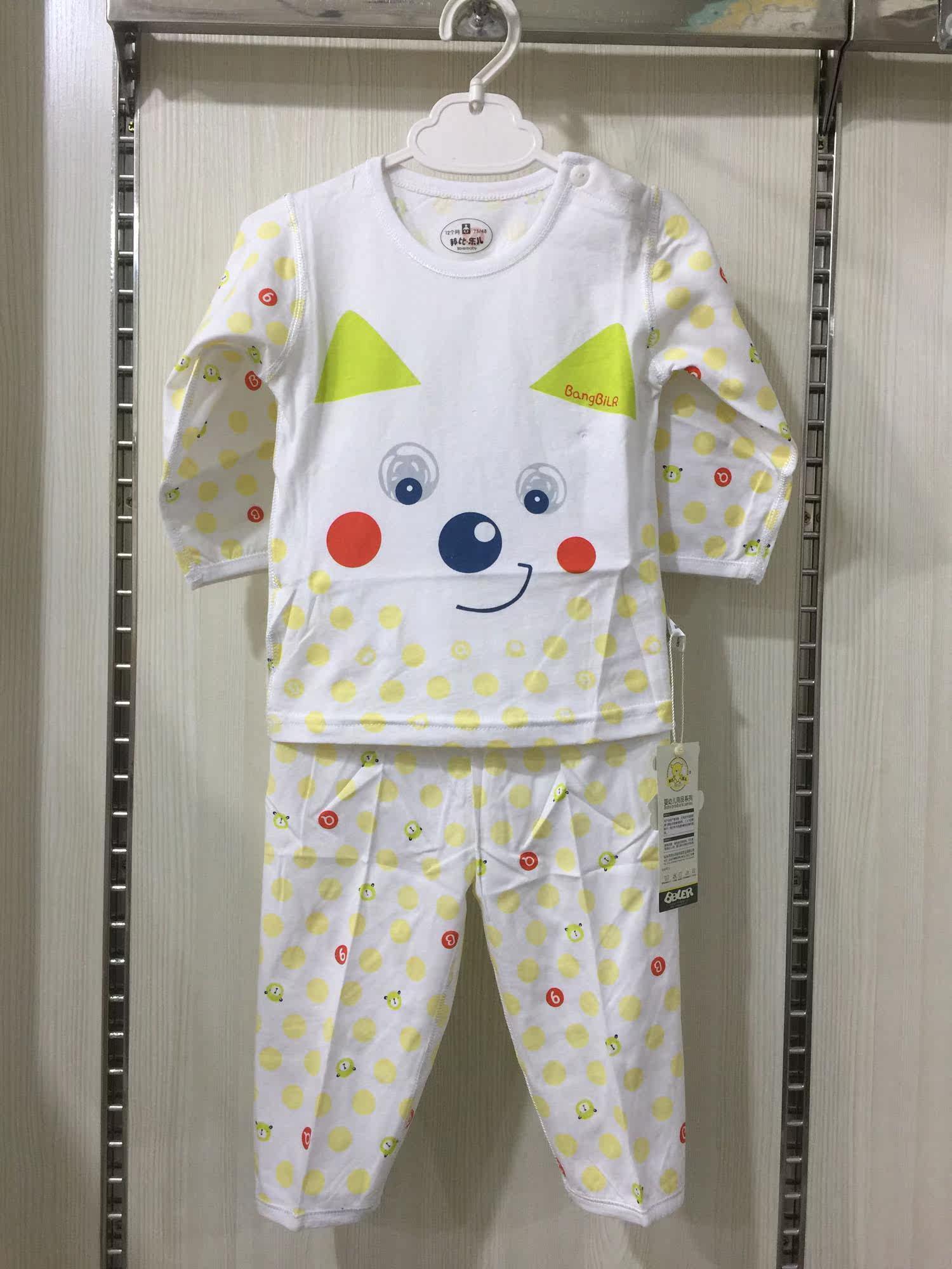 Bangpabile baby spring and summer new thin home clothes jacquard mint fiber shoulder open set summer air conditioning clothes