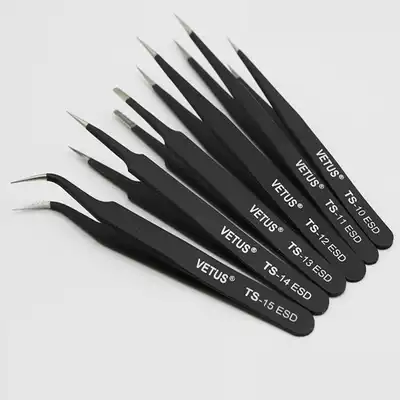 VETUS anti-static stainless steel tweezers Nail bird's nest hair pick high-precision pointed elbow tweezers clip