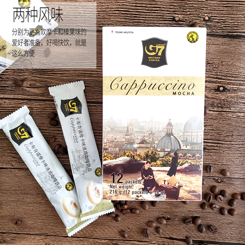 2 boxes Vietnam imports Central Plains G7 cappuccino hazelnuts fruity Moka instant coffee boxed coffee powder 216g