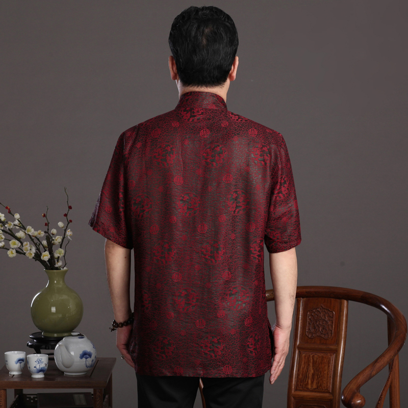 Real Mulberry Silk Summer Middle Aged Man Don men short sleeve shirt fragrant cloud yarn men's dress shirts and dads