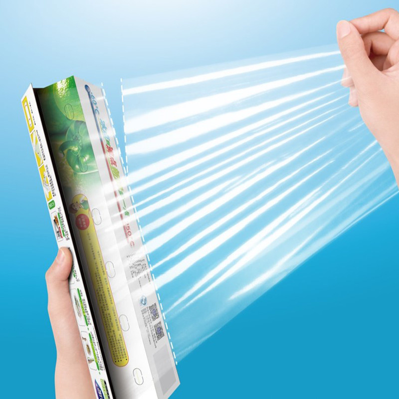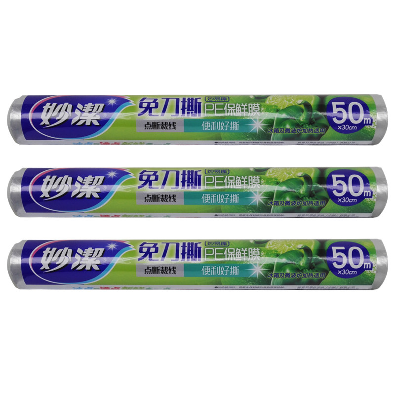 Miaojie disposable knife-free tear 30cm*50m point-breaking PE cling film large roll food hand-torn 3 rolls