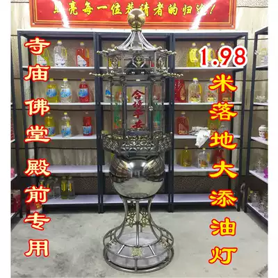 1 98 m floor oil lamp stainless steel long-term light for Buddha wind-proof lamp Temple Buddha Hall big oil lamp sky lamp