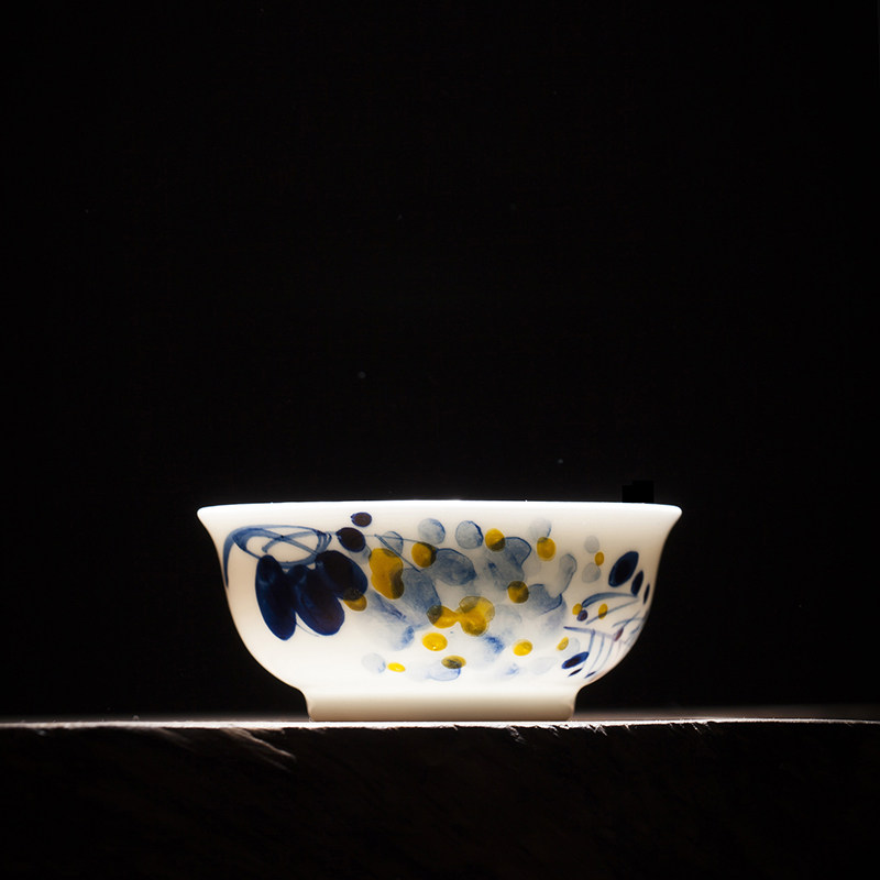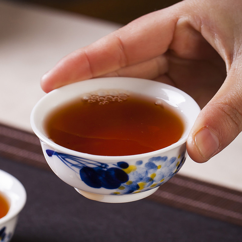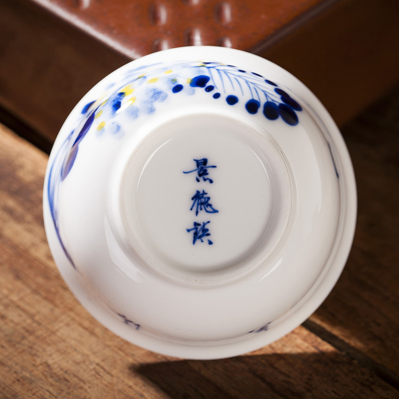 Folk artists hand-painted wisteria doucai blue and white porcelain master cup single cup Jingdezhen ceramic kung fu teacup horseshoe cup