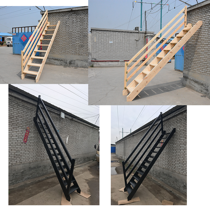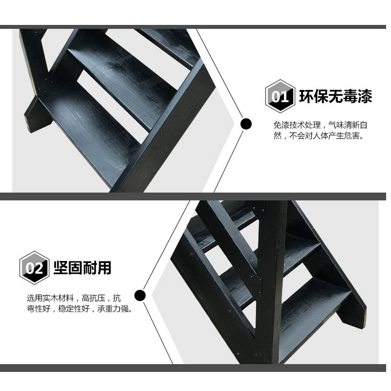 Interior solid wood loft stairs widening thickened dentall ladder duplex Villa Ladder With Armrests Black Log Ladder-Taobao