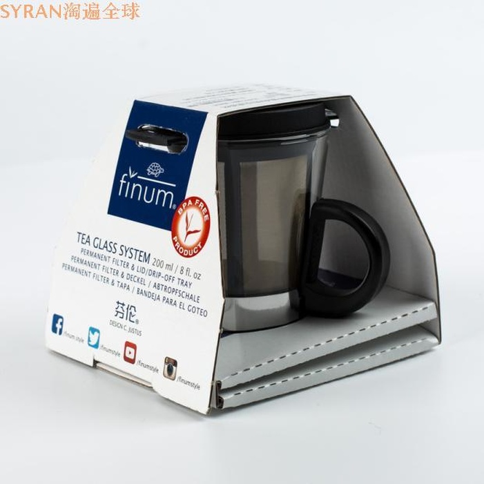 Original German imported Finum glass with lid and handle filter tea cup water cup tea cup 200ml red dot award
