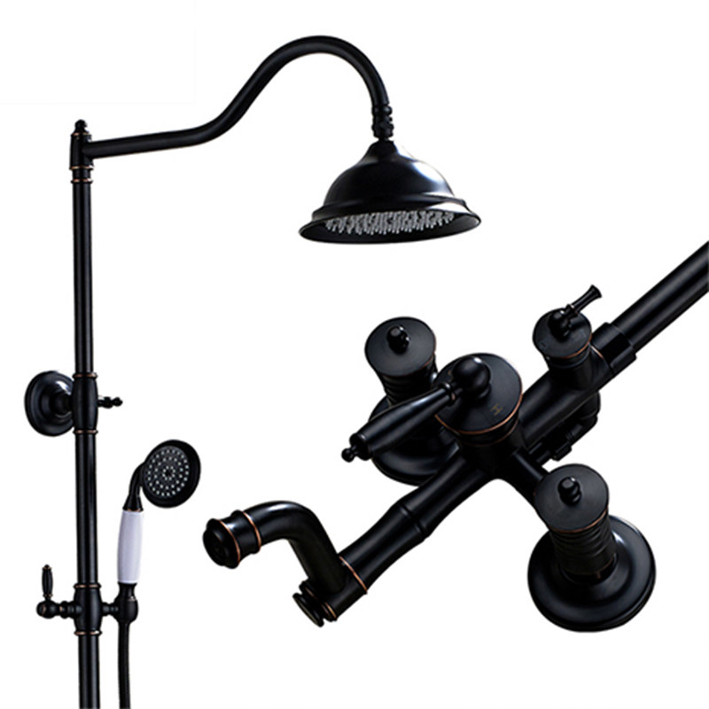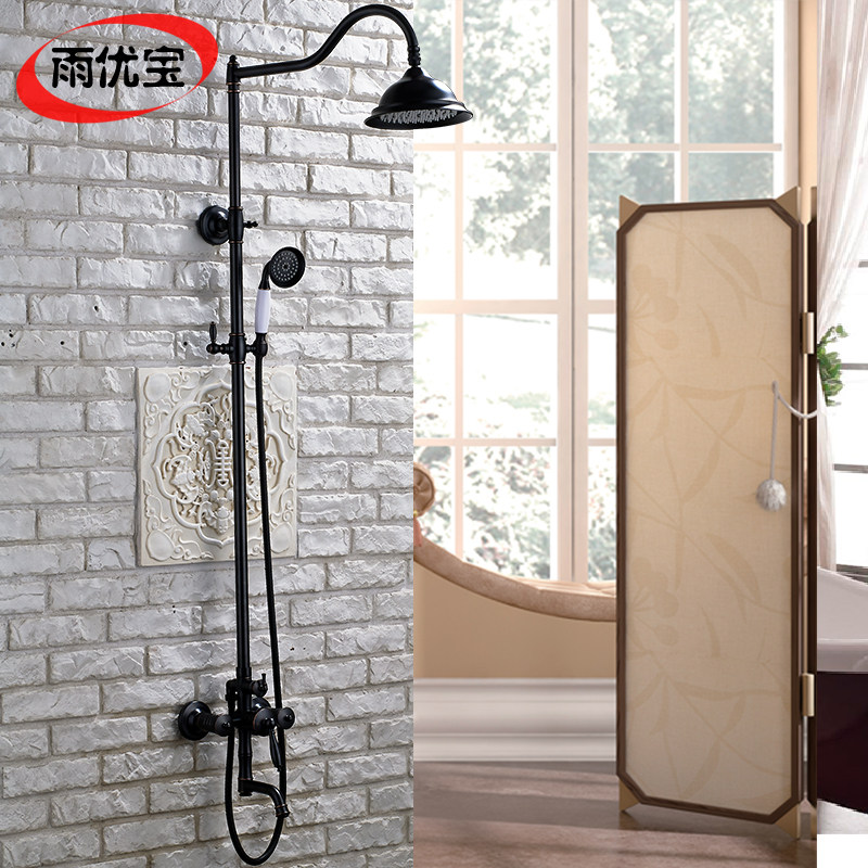 Full copper European-style retro shower black lotus shower head shower bath nozzle hot and cold home tap suit