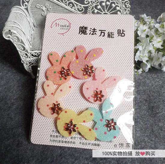 Korean children's magic stickers Broken hair stickers Bow glitter Magic stickers Banghai stickers(4 rabbit heads)