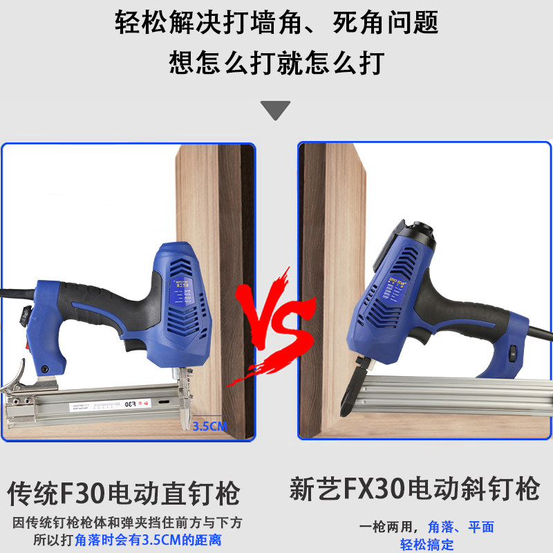 Xinyi FX30 electric oblique nail gun nail gun nail gun specializing in flat corners without dead corners nailing decoration tools