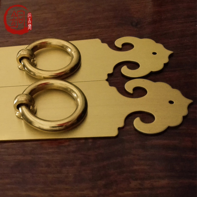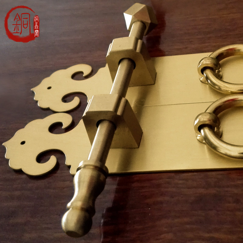 Chinese straight antique copper handle cupboard cupboard door full copper handle long strip large handle hole with a willing interference