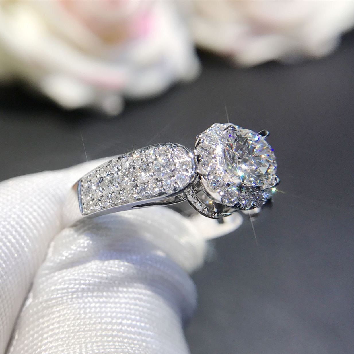 Foodie Diamond female ring finger 18K white gold 140 courting for wedding diamond ring female one carat wedding platinum special cabinet
