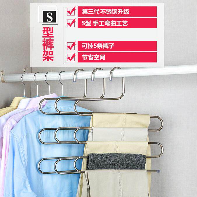 Stainless Steel Multifunction Magic S Type Multilayer Pants Rack Hung Pants Hanger Wardrobe Wardrobe Closets Pants rack Pants Hanger