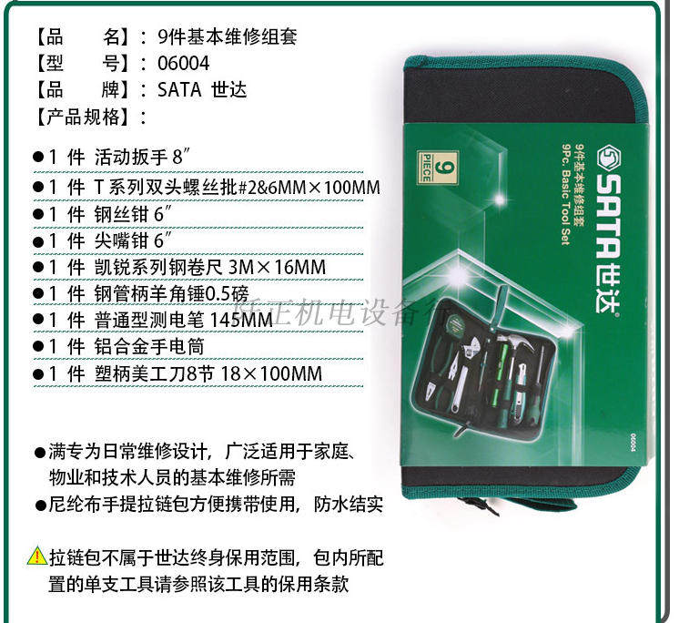 Shida Home Vehicle Group 9 pieces of basic maintenance handbag multifunction manual five gold tool bag 06004