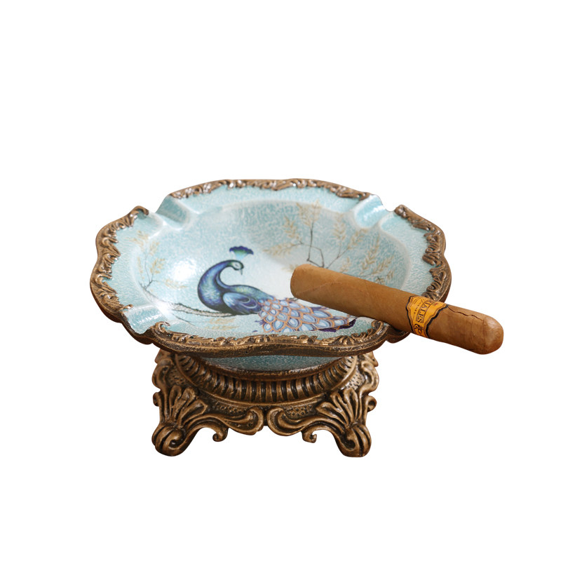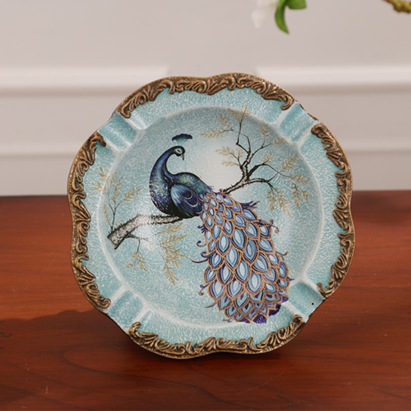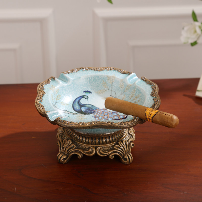 Peacock American Decorative Resin Tobacco Ashtray Tobacco Cylinder Eu Style Retro Creative Living Room Tea Table Home Ornament Swing