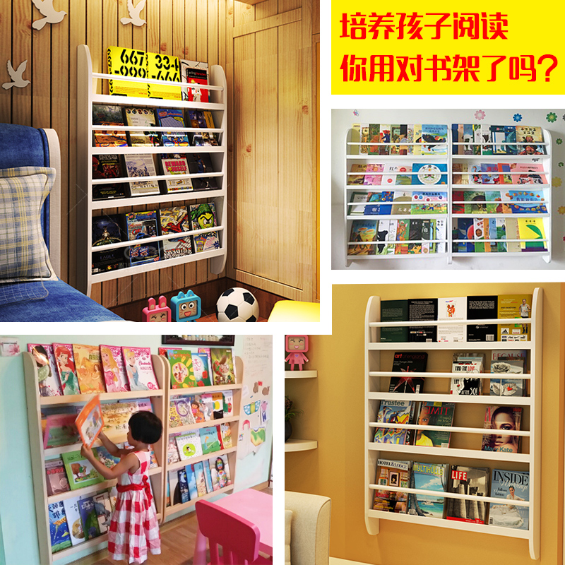 Solid wood children's bookshelves Painted Benshelves Kindergarten Home Wall-mounted Wall Wall bookcase Easy Jobaby ultra-thin