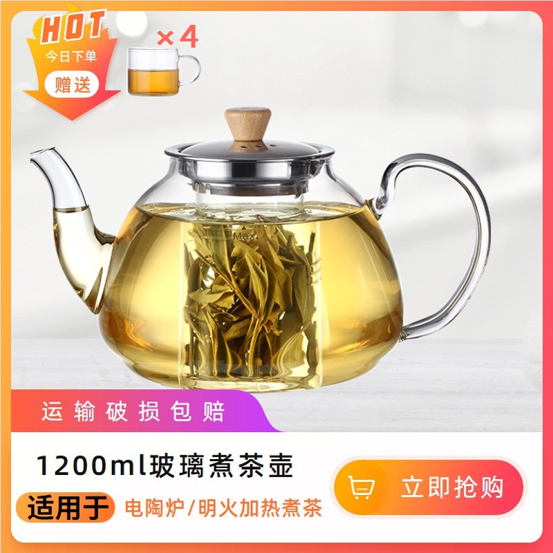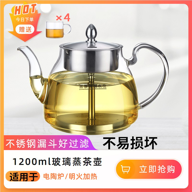Thickened glass steaming teapot induction cooker special tea steamer boiling water health pot boiling teapot high temperature steam pot
