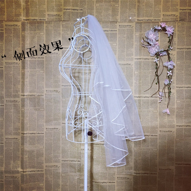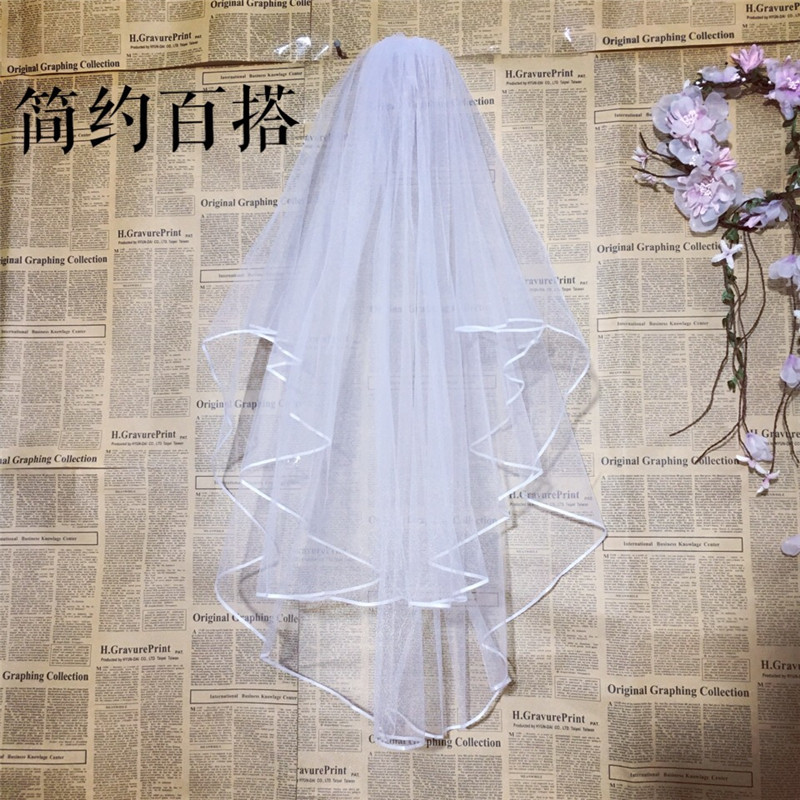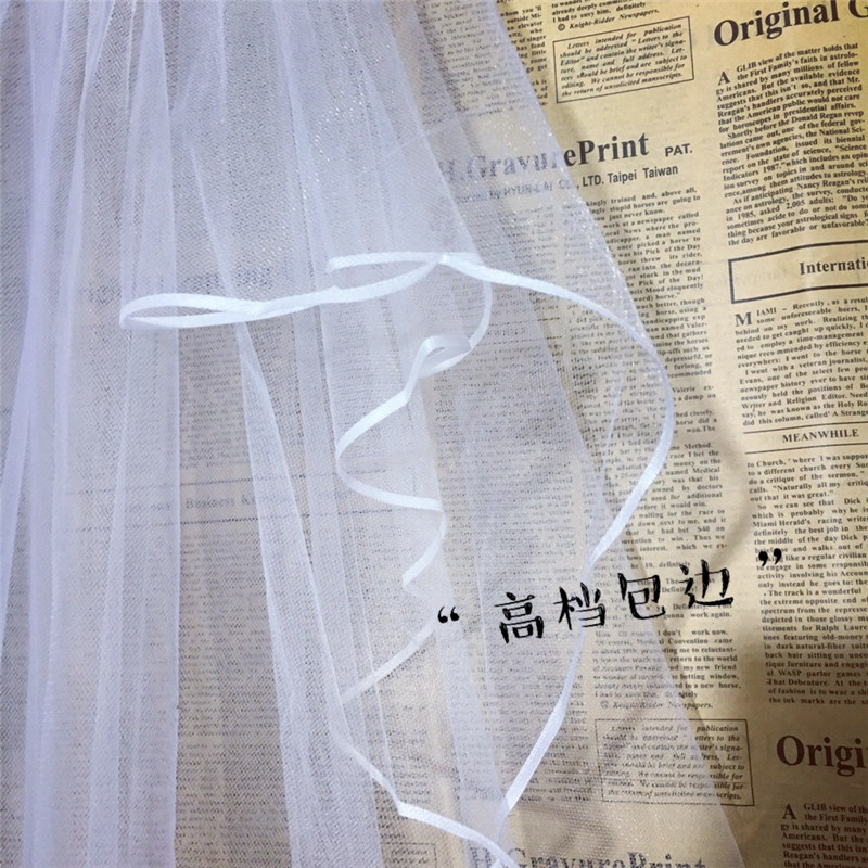 Bridal wedding puff veil Double-layer covered ribbon edging Multi-layer modeling veil plus hair comb wedding accessories