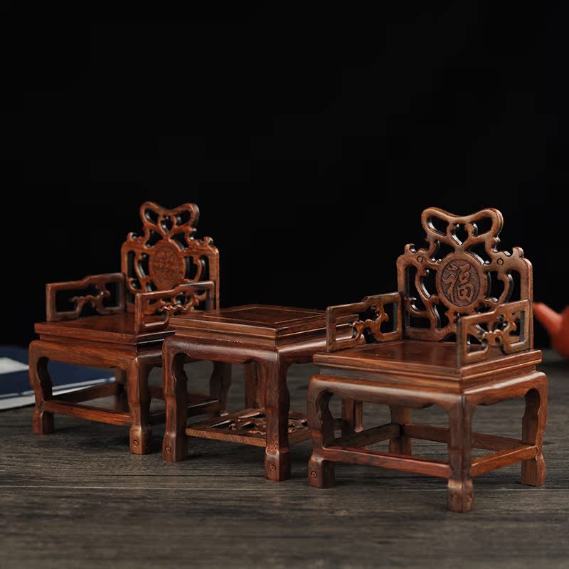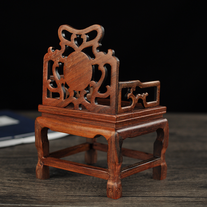 Red Wood Carving Craft Gift Pendulum with Ming and Qing Microminiature Miniature Furniture Model Solid Wood Imitation Antique Red Acid Branches Too chair Circle Chair Hem