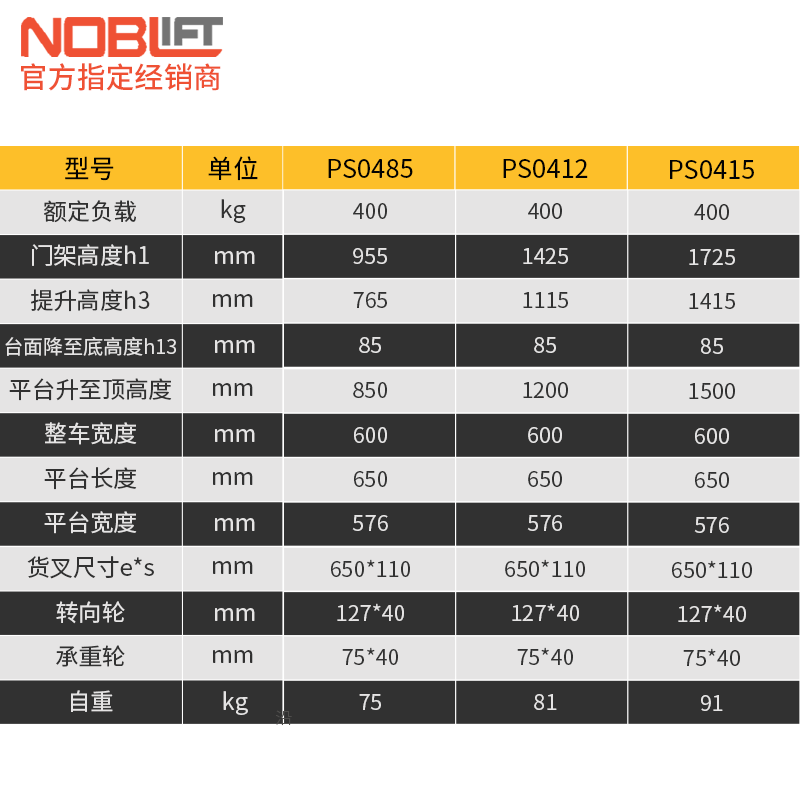 Nori Pile High Machine PS0415 Manual Hydraulic Luggage Stack High Car Lift Light Platform Car Elevated Car 400 kg